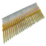 Размер этих гвоздей 2.5 х 60 мм, имеют кольцевую накатку, покрытие «горячий цинк» и максимально возможный размер для работы с обшивочными нейлерами, отлично сочетается с нейлером TCN-670. Размер и покрытие этих гвоздей позволяют использовать их для крепления фасадов. Отличный аналог более дорогому исполнению из нержавеющей стали.